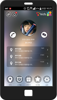 부모님 등 등록된 전화번호를 이용하여 통화 및 메시지 수신이 가능하며 아이의 현재 위치를