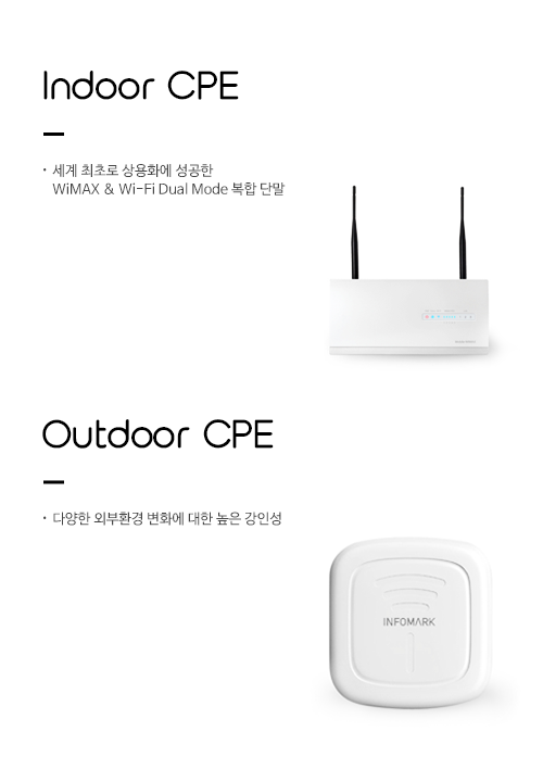 Indoor & Outdoor CPE(IMW-C200W/IMW-C500)Indoor CPE : 미국 시카고 4G World 2009에서 Best Mobile Internet Device 부문 Finalist 선정...