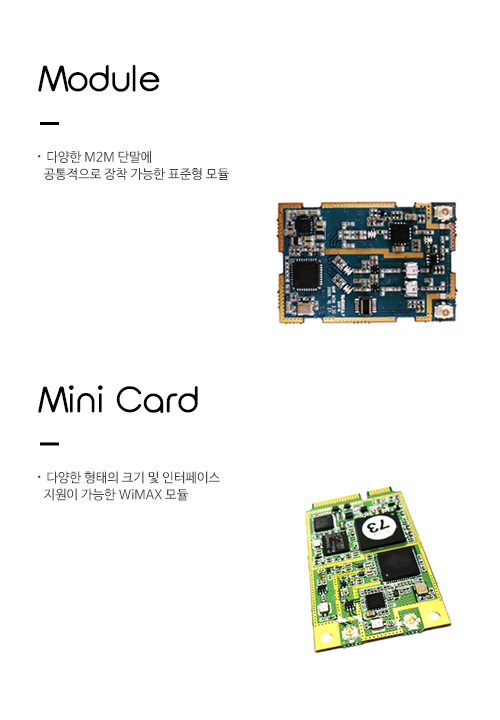 Module & Mini Card(IMW-M2M/IMW-F100/H100)Module : 다양한 분야의 임베디드 단발에 모바일 접속 기능 제공...