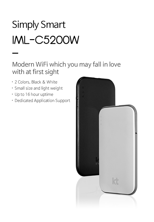 와이파이 쏙 슬림(IML-C5000W)85Φmm 독특한 원형 디자인, 13.5mm 슬림한 두께, 내장 배터리 포함 76g, 최대 10시간 연속 사용, 절전모드 사용 시 약 570시간 대기, 전용 애플리케이션 지원