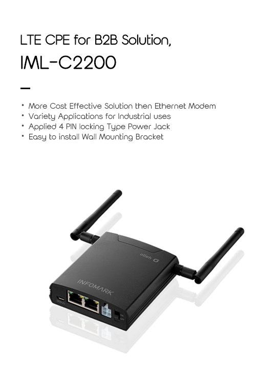 IML-C2200Free from installation cost compare to ADSL solution. Plug & Connection without driver installation. Web User Interface Based setting.